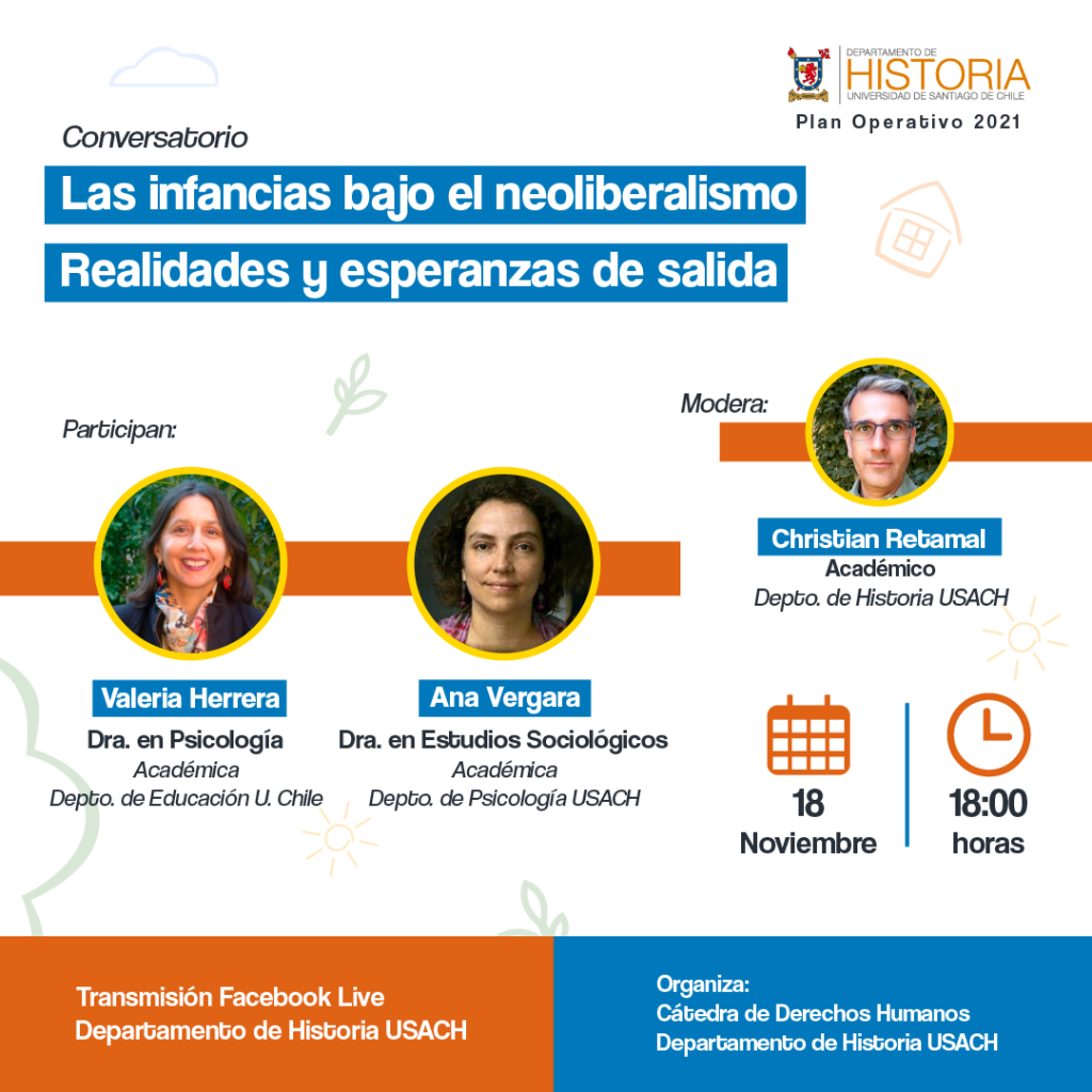 No te pierdas el conversatorio «Las infancias bajo el neoliberalismo: Realidades y esperanzas de salida» organizado por la Cátedra de Derechos Humanos del Departamento de Historia USACH