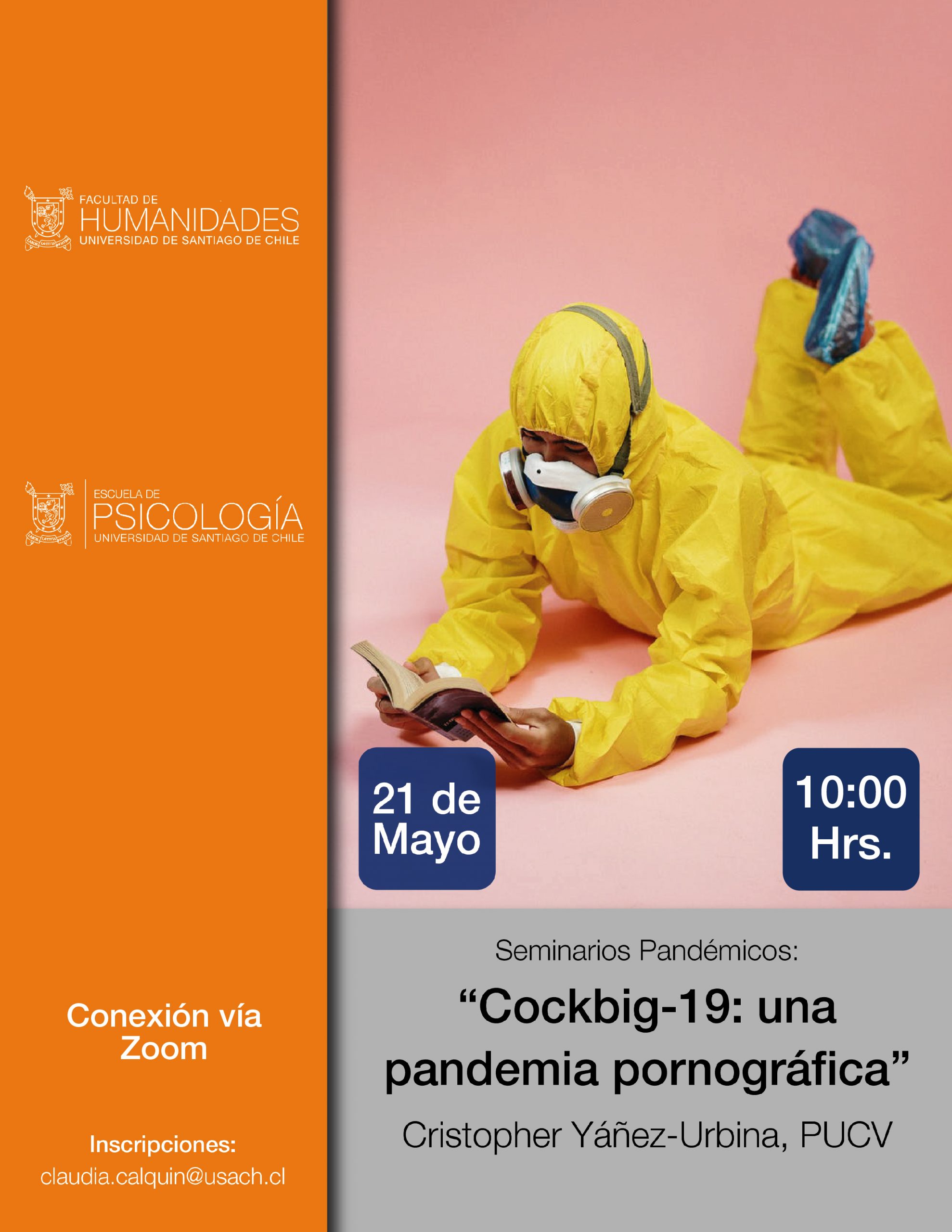 - “Cockbing-19: una pandemia pornográfica”, se denomina el segundo seminario a cargo Cristopher Yáñez- Urbina, de la Universidad de Valparaíso, el cual se podrá seguir vía zoom este jueves 21 de mayo a partir de las 10 horas.