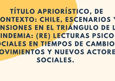 Del mismo modo, hoy, como nunca antes, ha adquirido protagonismo la subjetividad como eje articulador de la vida social. El derecho a la inclusión y a la dignidad son parte de las demandas ciudadanas que destacan en la expresión social. Atendiendo a lo anterior, en tiempos de crisis la capacidad de gestionar la complejidad es indispensable. De igual modo, asistimos en nuestro país, a un momento de generación ciudadana de una nueva Carta Constitucional con proceso paritario y con participación de los pueblos originarios. Todo enmarcado en una agenda de cambios sociales y culturales en que la relación Individuo – Sociedad y sus instancias intermedias se ven determinadas por condicionantes globales con efectos y consecuencias locales, digitalizadas por procesos de alcance planetario. Es así, que gran parte de estas transformaciones que experimentamos en la reconversión de los espacios público – privado, de las relaciones e identidades de género, de la invalidación y sospecha hacia las instituciones sociales, de la relevancia de la salud mental para el bienestar individual y social, de las nuevas formas de asociatividad, de la irrupción de una agenda de los cuidados, de las identidades de resistencia, entre otras, configuran un panorama que en nuestro país, se ha visto catalizado por dos contextos de alto impacto, cuyos efectos están en pleno desarrollo. Todo ello significa que la incertidumbre y ambivalencia ha trastocado las supuestas “condiciones de normalidad” en los marcos sociales e individuales en que se realiza la cotidianidad. Desde la investigación, la reflexión académica y la mirada de autor/a, ancladas en nuestra disciplina y en las ciencias sociales, invitamos a aportar en esta nueva publicación de nuestra Escuela.