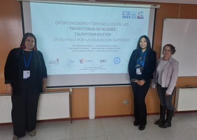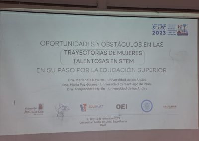 Durante la presentación en la que participó la profesora, Dra. María Paz Gómez, se analizaron en detalle los datos del segundo año del proyecto FONDECYT, centrándose en las experiencias universitarias pasadas de mujeres talentosas que actualmente se destacan en campos STEM.