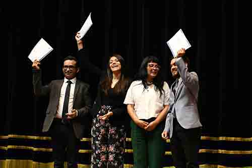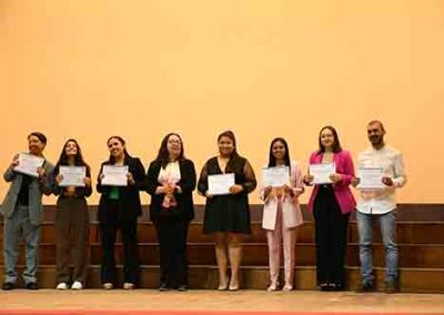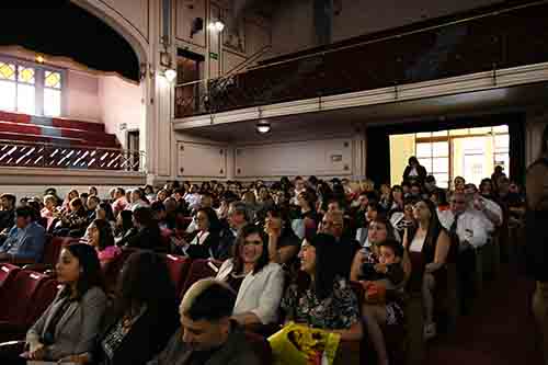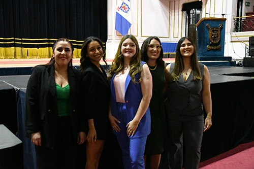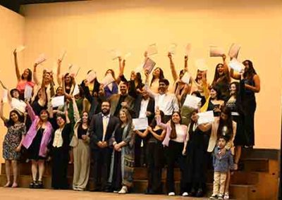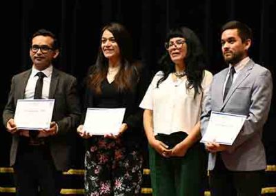 Luego de un breve interludio artístico, subieron al escenario cinco titulados del Magíster en Psicología Educacional del 2021 para recibir sus diplomas, seguidos por los cinco titulados del Doctorado en Psicología, destacando a nuestras profesoras Dra. Johana Cabrera y Dra. María Soledad Loyola.