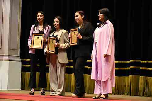 Durante la ceremonia, se entregaron premios a los mejores alumnos, incluyendo a Daniela Alarcón Fuentes, quien compartió su testimonio sobre sus años en la USACH, destacando la adaptación de la universidad a las clases online y superando los desafíos que la pandemia presentó.